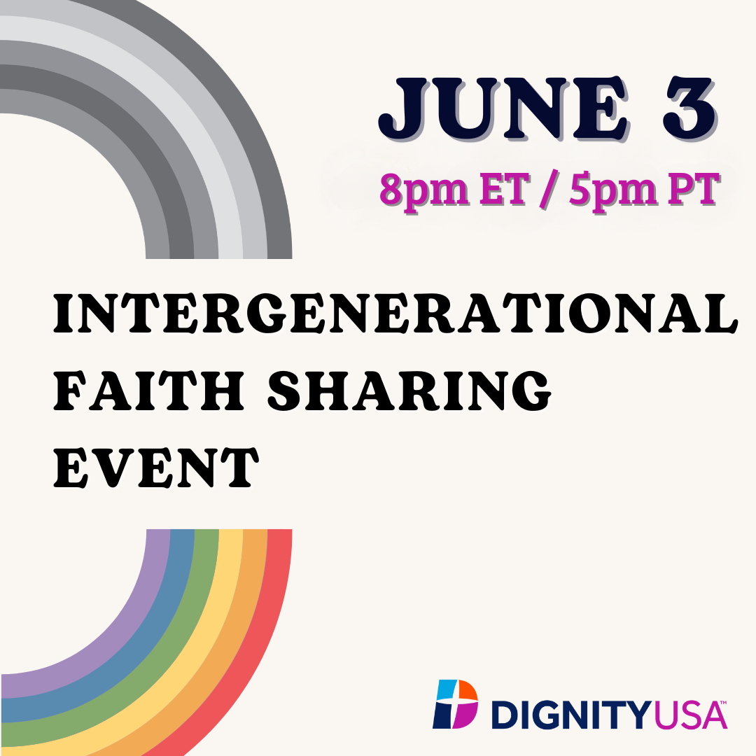 With leadership from the Aging with Dignity, Women of Dignity, and Dignity Young Adults, DignityUSA is deepening connections among our members of different generations. This faith sharing is a kickoff event that will involve sharing stories of faith and identities by representatives from each caucus. Join us on June 3, 8 PM ET/5 PM PT to listen and learn! A $10 donation is recommended for this event.